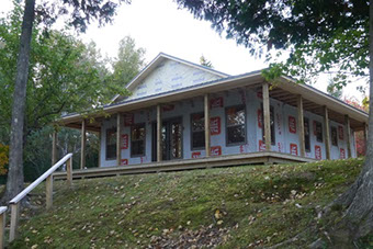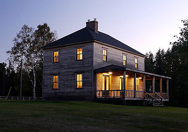 This 100 year old timber frame house in New Brunswick, Canada lies on the banks of the Miramichi River. It is being carefully restored and re-built for private clients.