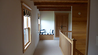 A close examination of the existing house showed that the original sole plates had been affected by rot and termites. The solution involved jacking up the entire structure and fitting new timbers before lowering it back into place. Windows and doors were replaced and new cedar shingles fitted to the outside. Two unsympathetic extensions were removed and more compatible porches added. The house and barn were completely stripped out and re-planned around a new chimney stack with modern kitchen and bathrooms to complete the restoration.
